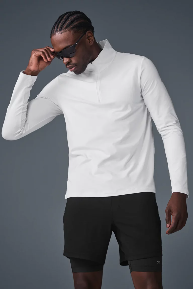 Alo Camiseta de Manga Larga Reform Conquer Cremallera 1/4 Blanco